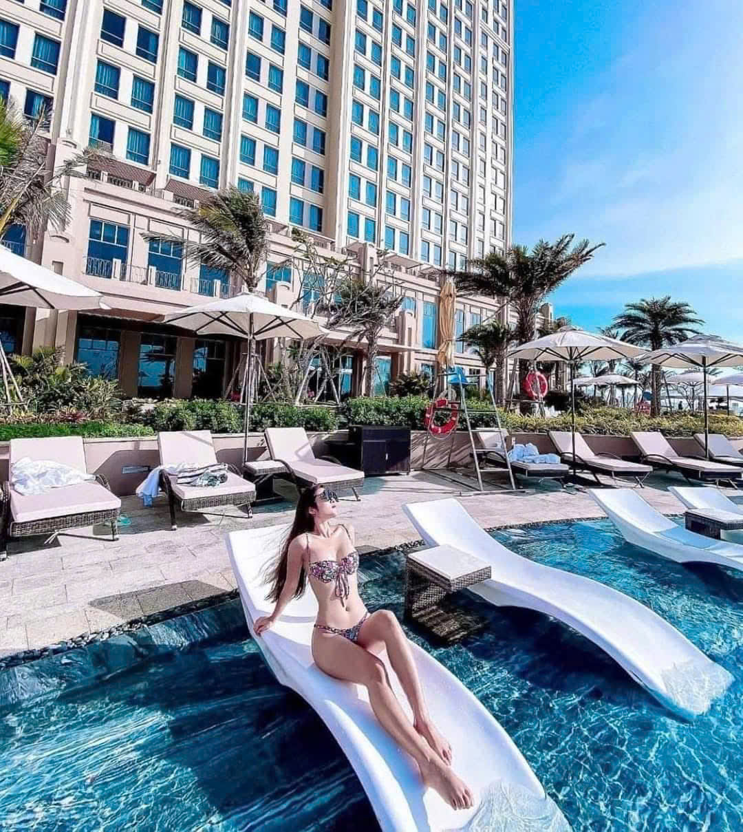 Một trong những resort 5★ có tone màu trẻ trung, thiết kế hiện đại, phù hợp cho nhóm bạn thích sống ảo hoặc cặp đôi tìm nơi yên tĩnh gần biển.